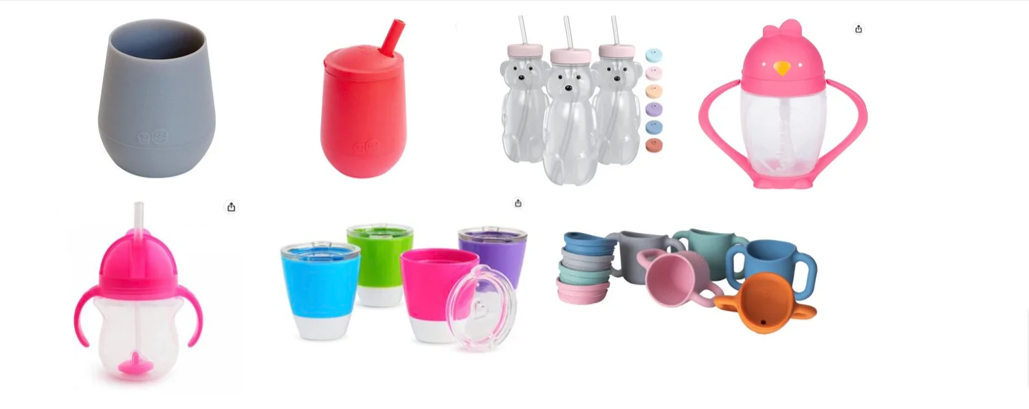 In general, we recommended skipping the hard spout sippy cups and the 360 cups. Below is a list of our favorite feeding and kitchen items: